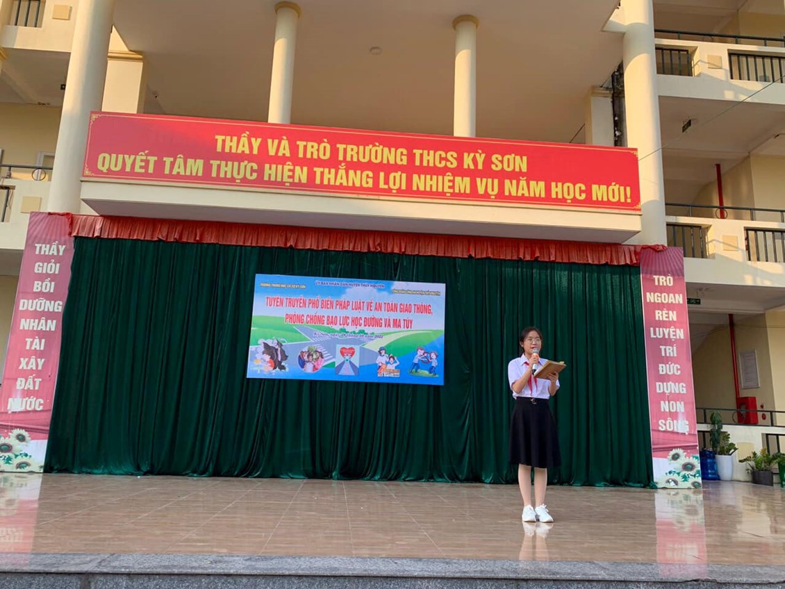 Ngày 28/10, Liên đội trường THCS Kỳ Sơn - Thuỷ Nguyên - Hải Phòng tổ chức tuyên truyền phổ biến pháp luật về An toàn giao thông, phòng chống bạo lực học đường và ma túy học đường.